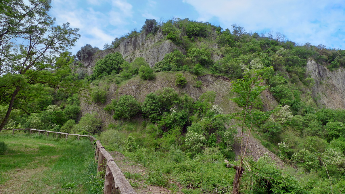 Nei pressi della zona umida salite sulla sinistra lungo il bordo esterno che vi porta in due punti panoramici: nel primo avete la visione della cava nella sua interezza; nel secondo, vicino alla parete della cava, potete ammirare i colli che avete appena attraversato. Continuate sul sentiero fino a raggiungere il bivio incontrato durante la salita: scendete a sinistra fino all'area attrezzata.