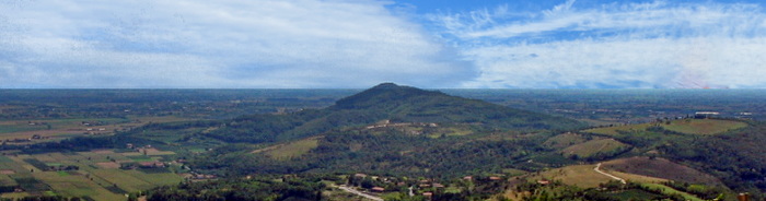 Il Monte Cecilia (199 m) è un classico laccolite, cioè una struttura concordante formata dall'intrusione di lava latitica tra i giunti di stratificazione delle rocce sedimentarie (scaglia rossa), che sono state sollevate.