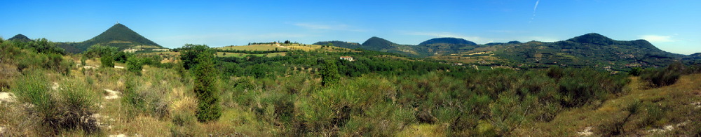 Prendete a destra il sentiero pianeggiante che passa vicino ad un'abitazione. Dopo aver superato le pertinenze dell'abitazione, prendete il sentiero a sinistra che porta all'assolato cocuzzolo Cavamorti (114 m), dalla vegetazione unica, abbandonando temporaneamente il sentiero N. 8. Un cartello fornisce la descrizione del vegro e un altro cartello si trova alla fine della salita. All'inizio, sulla destra, c'è una panca con un tavolo. A parte il giallo intenso di cui si copre il colle nella tarda primavera con la fioritura delle ginestre, si possono incontrare vari tipi di orchidee e soprattutto la rarissima ruta patavina, nell'unica stazione italiana. Il panorama 📷 spazia dal M. Cero, al M. Ventolone, al M. Ricco e, in alcuni punti, sembra di essere in Toscana.